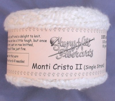 - 4 ply (like Peaches and Creme) that yields 5 stitches to the inch.